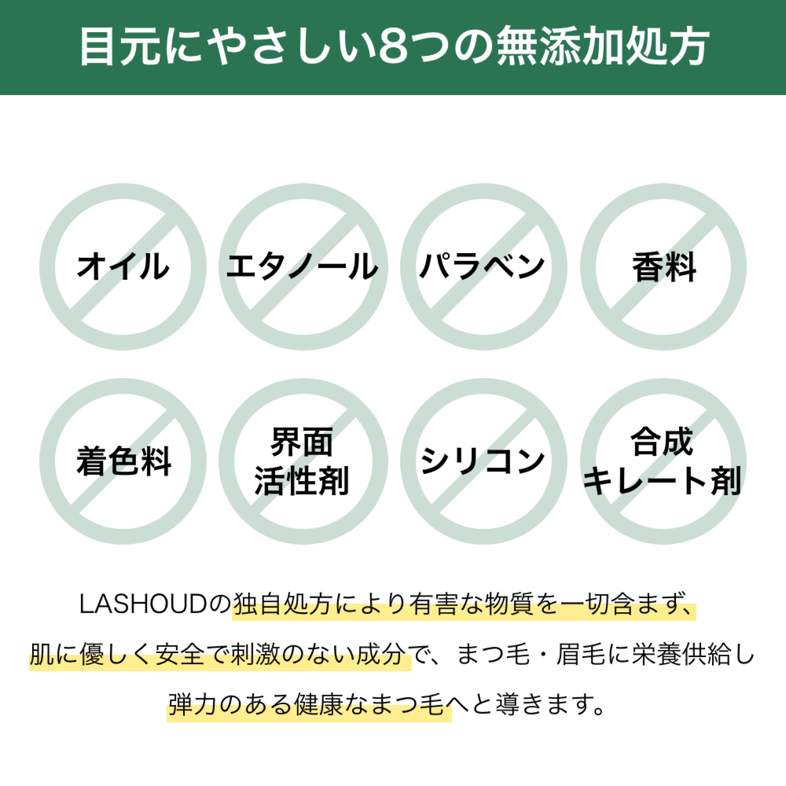 今までたくさんのまつ毛美容液を使いましたが、刺激のないものは効果がなく、効果があるものは色素沈着や痒み、赤みがでたりと副作用がありました。